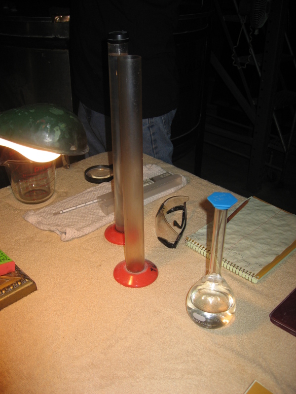 From the malt room we checked out where they malt the barley – using cherrywood and applewood (which always makes me thing of yummy smoked pork products). From there, we walked over to the fermentation and distillation area, where he showed us the “beer” that goes into making the whisky and we also got to see how he measures it.