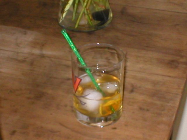 Pour into a small glass.? Add several cubes of ice.? Stir in the glass for a few minutes, and if desired, add a twist of lemon or orange.