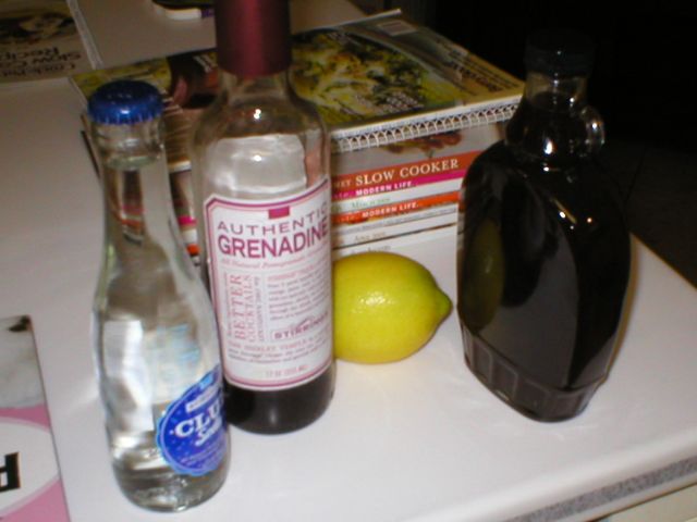 The answer, for me?? I used the grenadine with the Fentiman’s, but instead of using it also for the Simply Lemonade and risk it being too sweet, I used 100% pomegranate juice (here, POM).? Since the lemonades were replacing both the lemon juice and the soda, and I wouldn’t be shaking these, I altered the recipe a bit.