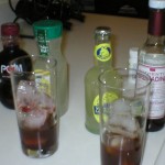 The Simply Lemonade variation is still very lemonade-y (in the American style of lemonade sense) though with a backend of the pomegranate juice and not a lot of room for the amer picon to shine through (note that my amer picon is a bit light, it seems).? As a summer time drink it wouldn’t be bad at all though I might consider using something instead of amer picon in it – perhaps even a triple sec plus bitters or amaro.? It might be worth experimenting to see what’s good.