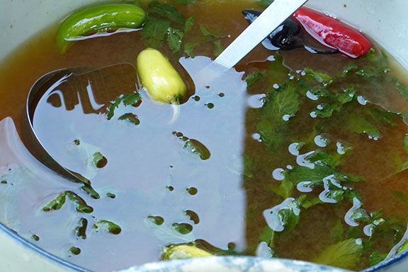 The punch itself involved a balanced mixture of Chairman?s Reserve St. Lucian Rum, fish pepper syrup,?fresh lime juice, Angostura bitters, and sprigs of fresh mint. The syrup is simply a one-to-one blending of sugar and water which was then infused with the peppers. Many of the participants at East Oaks said the flavors were rounded and refreshing. Some even said they found hints of spices they would expect to find in Bloody Marys which seemed fitting for the restaurant’s off-site afternoon event.